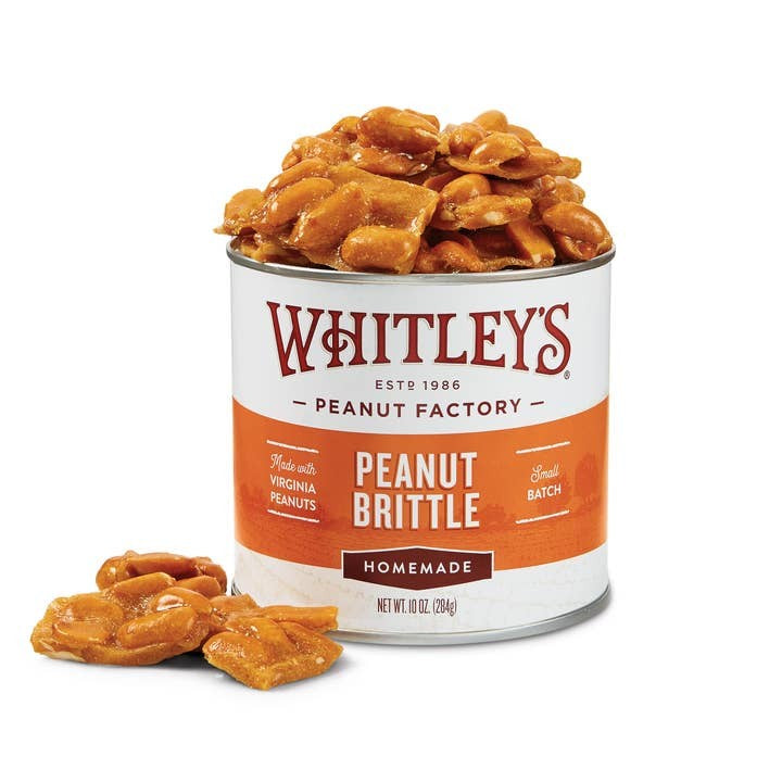 Whitley's famous homemade peanut brittle combines crunchy farm-fresh peanuts with sweet, crunchy brittle for a marriage made in heaven. (not available July-August). All of their nut products in vacuum sealed tins have a 10-12 month shelf life before opening.